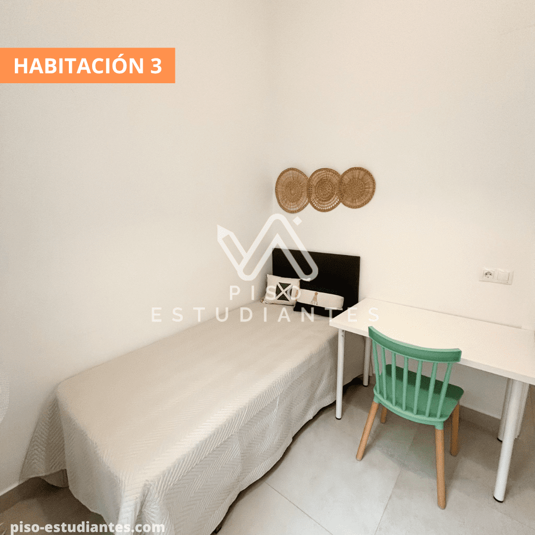 Con cama, armario, silla y mesa estudio