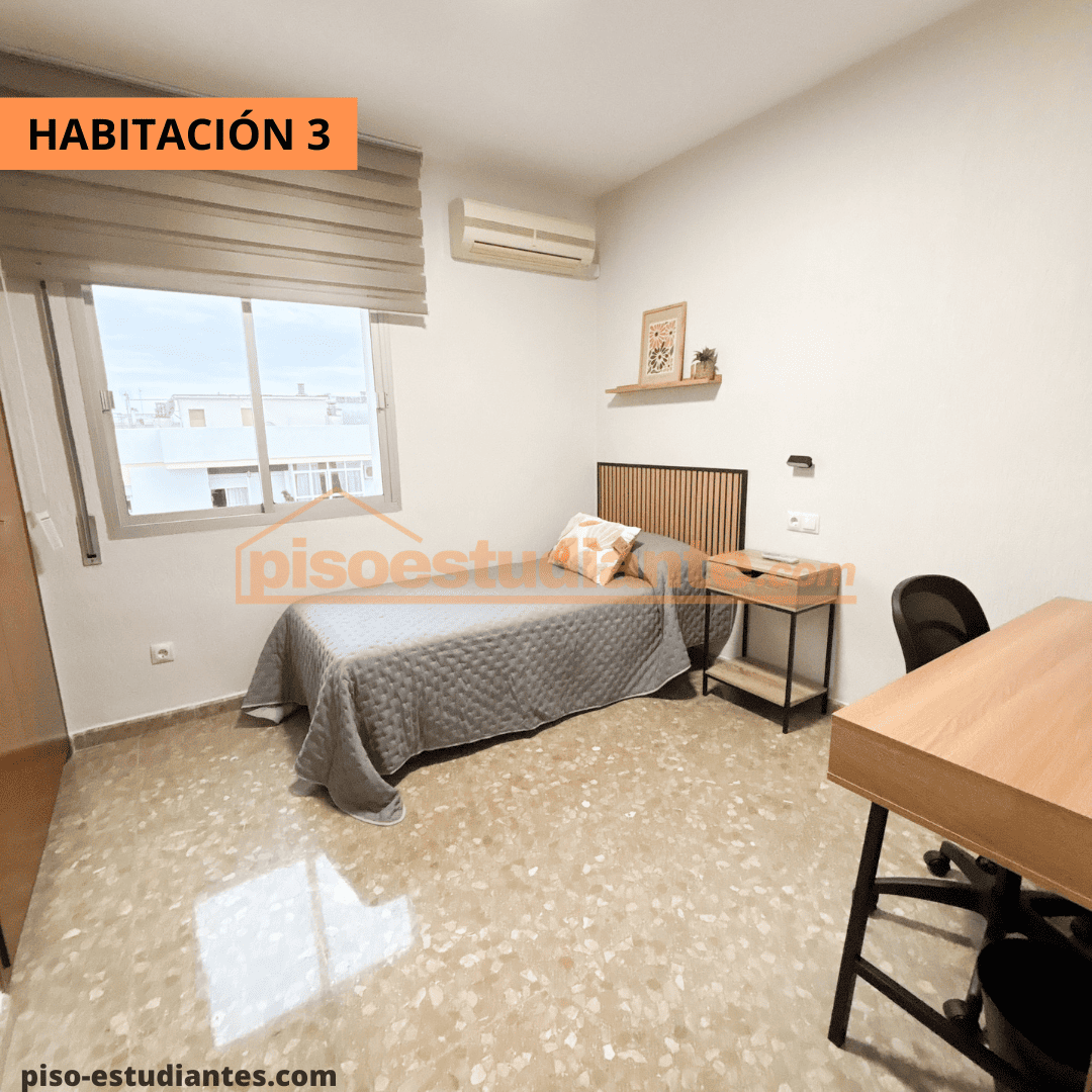 Con mesa y silla estudio, armario, cama (habitación 4 cama de 135x190cm), aire acondicionado en las habitaciones 3 y 4
