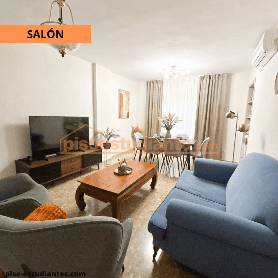 Con aire acondicionado, mesa y sillas comedor, TV y sofás
